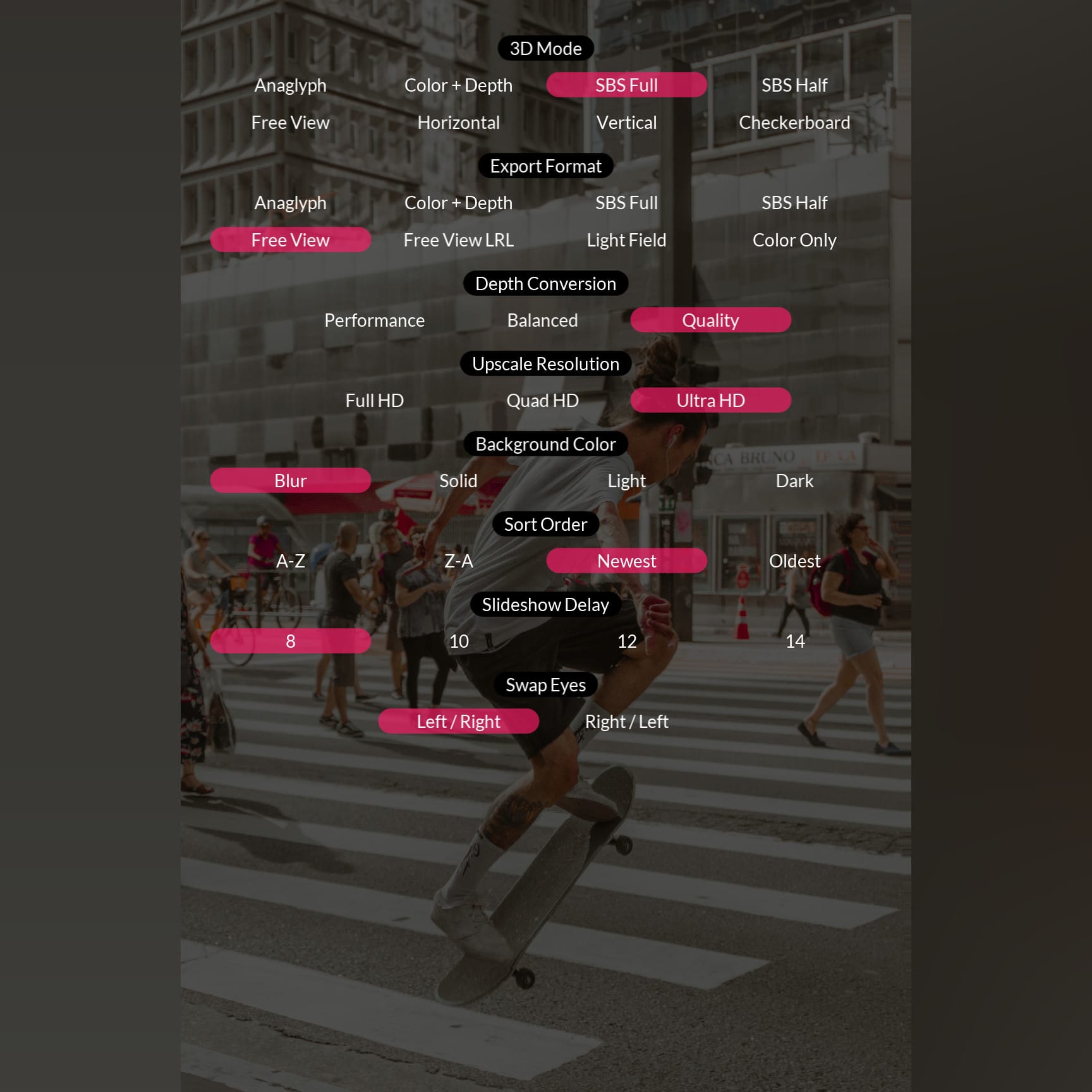 One-Click 2D to 3D Stereo Media PlayerPremium Stereoscopic 3D Depth Download Now Key Features Convert Any PhotoLoad any native stereo photo or standard 2D image, and convert them into 3D on-the-fly.Learn More View Live in 3DSupports “Glasses Free” 3D displays, popular XR glasses, and Anaglyph optimized for LCD.See Devices Stereo 3D ExportConvert entire folders to RGBD, or export between any of the supported stereo formats.Full Features Application Screenshots Stereoscopic Samples Generated Depth Cross-Platform MIT LicensedOpen Source SoftwareReleased under the permissive MIT Licence, source code is available for download or modification on GitHub. Developers: Visit the GitHub Repository Get Source COde